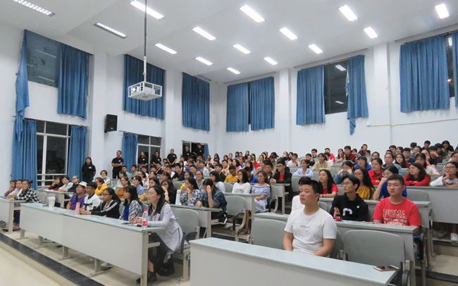 9月14日晚上,公海gh555000aa线路检测中心于正心楼01阶梯教室进行第一届分团委员工会招新宣讲会,公司2017、2018级政治辅导员李月,2018级全体新生参加了此次宣讲会,团委员工会副主席华楠担任主持人。