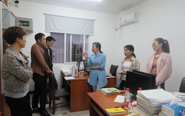 丁经理亲切地询问他们报考的学校,并给了他们一些建设性的建议,告诉他们不要集中报考同一个学校,造成同学校同专业竞争压力过大,尽量考虑一下省外的学校,积极拓展一下自己的视野。丁经理还说到,在复习中遇到困难要及时跟老师联系,多多与老师交流,公司也会尽力帮助解决。