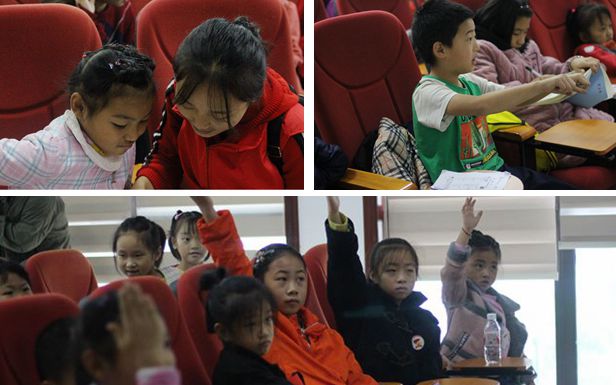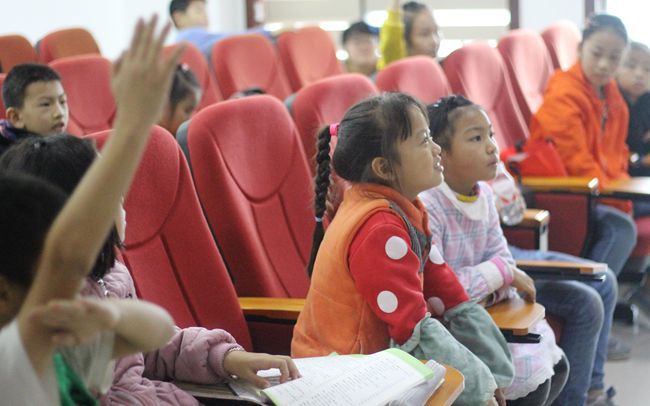 校园里不时传出孩子们阵阵欢声笑语。30多名小朋友在志愿者们的引领下,通过课堂授课、动态交流帮助孩子们了解身边的环保问题和认识环境问题的重要性。课上,志愿者绘声绘色,深入浅出,以生活中平常的例子将环保意识传递给孩子们。孩子们积极回答课上志愿者提出的问题,课堂气氛十分活跃。