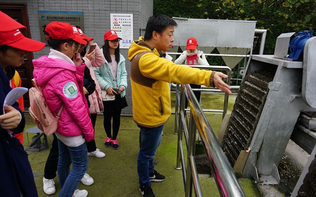随后,同学们在李渡大坝污水处理厂厂长梅杰的带领下参观了格栅、旋流沉砂池、脱水池、氧化沟、调节池、二沉池、曝气生物滤池及接触消毒池等设备。在格栅处,梅厂长向大家详细介绍了粗格栅与细格栅清除杂物的区别。在接触消毒池处,梅厂长将消毒后的水用量筒盛放,方便同学更加细致的观察。整个参观过程中,同学们结合所学知识向厂长提出了很多问题,梅厂长认真耐心地解答,同学们也在这次活动中学到了很多知识,将理论与实践相结合,将专业知识学扎实,为以后从事环境保护、环境评估工作做好充分地准备。