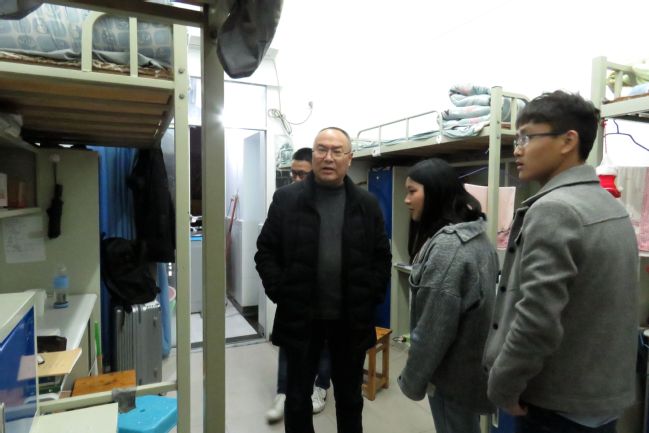 查寝的过程中,领导老师提醒同学们不要使用违规电器,关注自身安全,以提高员工们的纪律性和严谨性;况书记指出在生活上应养成严格自律、早睡早起的良好习惯,为日常学习提供较好的生理基础。况书记还询问同学们日常生活中遇到的问题并给予了生活建议,同时对寝室卫生进行检查。李武斌老师叮咛同学们一定要注意寝室安全,要安全用电,禁止晚归,同时要注意保持寝室的整洁。整个检查过程进行得很顺利,各寝室同学都积极配合。在此过程中,领导与员工们进行了亲切的交流,在交流中流露出对学子们的殷切期盼。