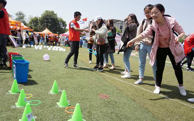 活动过程中,为了增强趣味性和加强印象,志愿者还准备了一些有奖小游戏,赢得游戏的员工可以得到雷锋书签和徽章。志愿者通过猜字谜、套圈、垃圾分类投球等方式,让员工参与到游戏中。志愿者积极向对活动感兴趣的员工讲解活动规则,并向员工宣传环保知识,前来参与的员工们也主动而有序的排起了长队。此处活动更吸引了几位外教老师,参与了活动,同时志愿者赠送了雷锋书签和徽章。