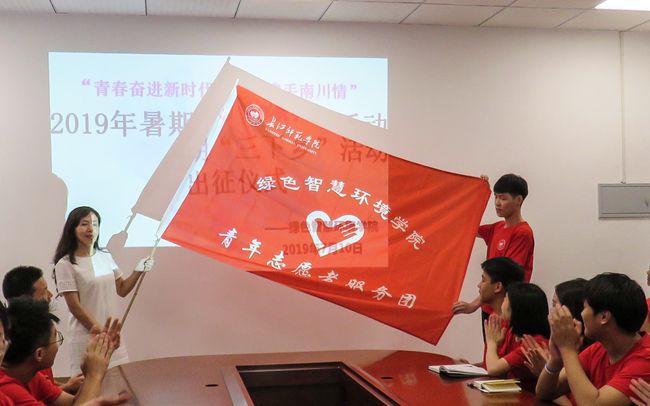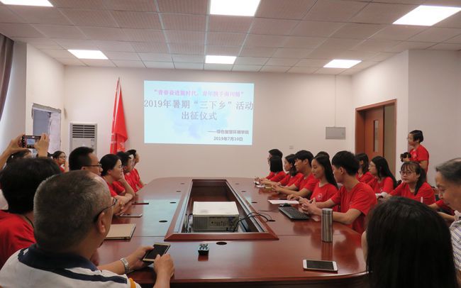 在所有准备工作基本落实的前提下,该团队顺利举行了以志愿者代表发言、党总支书记况守龙指示工作、志愿者宣誓、丁世敏经理授旗为主要内容的2019年暑期“三下乡”实践活动志愿者团队出征仪式。随后,团队在该院领导老师的带领下出发前往南川,开启他们为期七天的“红马甲”志愿之旅。