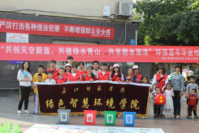 7月13日下午,适逢重庆市南川区东城街道赶集日,巴渝公益事业发展中心与公海gh555000aa线路检测中心2019年暑期“三下乡”实践团队在此共同举行了以“共创天空蔚蓝,共建绿水青山,共享碧水荡漾”为主题的环保嘉年华活动。来自东城街道近200名居民参加了此次环保活动。