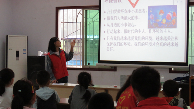 课堂上,志愿者围绕安全和环保两个主题展开宣讲,为小朋友们重点讲解了生活中的安全常识、逃生办法、环保知识、环保图标等,图文并茂,不仅增加了课程的趣味性,也方便了小朋友们理解。最后,志愿者带领他们学习环保知识拍手歌,寓教于乐,提高了他们的积极性。课堂结束后,顾及到雨天路滑,志愿者撑起雨伞护送小朋友们回家。在确保每一个小朋友都安全到达后,志愿者打扫好教室,离开了市民学校,返回校园。
