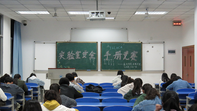 竞赛开始前,员工会干部布置好考场,安排员工入座。同学们按时到达考场,开始答题。题目采用客观题形式,意在了解同学们对实验室各项安全制度和操作流程的掌握情况,从而让同学们规范自身行为,减少安全事故的发生。