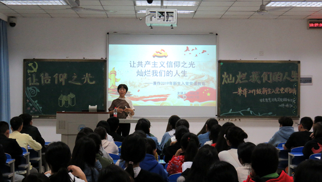 刘书记主要从以下几个方面展开了此次党课。一是入党的条件和程序,二是党员的义务和权力,三是党的性质及纲领,四是党的宗旨。她着重强调“中国共产党以马克思列宁主义,毛泽东思想,邓小平理论,‘三个代表’重要思想,科学发展观,习近平新时代中国特色社会主义思想”作为自己的指导思想。中国共产党在社会主义初级阶段的基本路线是:领导和团结全国各族人民,以经济建设为中心,坚持四项基本原创,坚持改革开放,自力更生,艰苦创业,为把我国建设成为富强民主文明和谐的社会主义现代化国家而奋斗。刘书记还号召同学们积极学习党的路线方针政策,加强理想信念修为,努力学习,主动向党组织靠拢,积极提交入党申请和思想汇报。刘老师还就入党申请书、思想汇报等的撰写进行了指导。