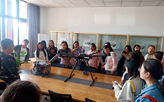 在场的每个员工都对实验室充满了好奇,同学们在刘东升老师详细的介绍下了解到许多精巧仪器设备的构造和用途。为了使同学们能更好的学习和实践,王宝珍老师还用视频展示了研究的项目。同学们从袁静老师的教学中深刻体会到了科技设备给人类带来的巨大便利。