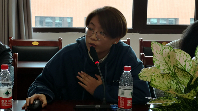 最后,进入学委分享阶段时,2018级环境科学3班杨蕊嘉从自己最初选任学习委员一职的初心说起,和大家一起交流了营造良好班级氛围的重要性以及班委内部细化分工,任职班委时的自我时间分配等内容。