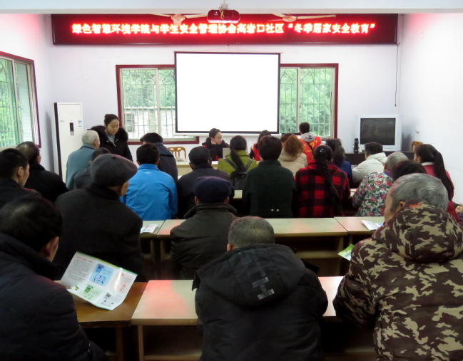 志愿者们来到高岩口社区为居民们宣传安全教育。宣讲之初,志愿者们列出许多居民楼里发生火灾的实例,从而提醒居民们重视安全问题。志愿者们从冬季设备安全、冬季取暖安全、水电用气安全和冬季防火知识等方面向社区宣传相关的安全注意事项。最后,还列举了遇到各类火灾时的解决办法,教育居民们防患于未然,从而提高应急处置能力、自救互救、避险避灾等技能和方法。