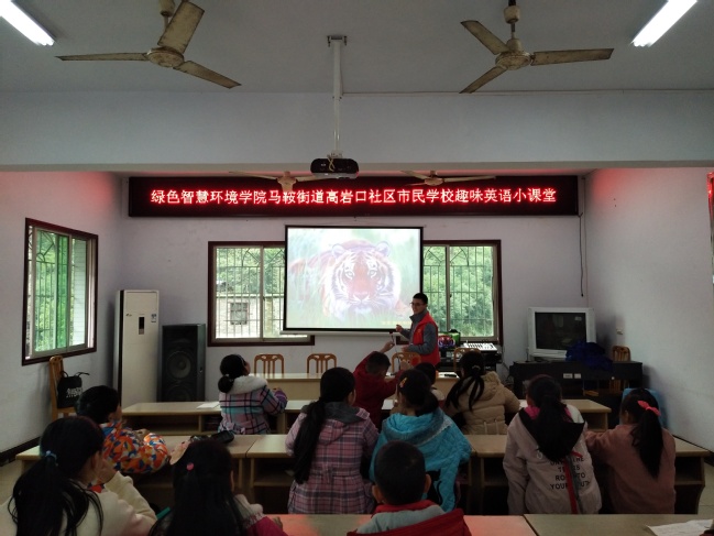 上课前,志愿者们布置教室,并对提前来到的小朋友进行作业辅导,为他们答疑解惑。课上,志愿者们首先为小朋友们分发单词卡片,以图文并茂的形式教小朋友们认识单词。紧接着,志愿者们带领他们利用卡片上的单词做小游戏。在方便小朋友理解的同时,也增强了课堂的趣味性。课后,志愿者们组织小朋友们进行了羽毛球、跳绳等体育项目。小朋友们在娱乐的同时,也锻炼了身体。