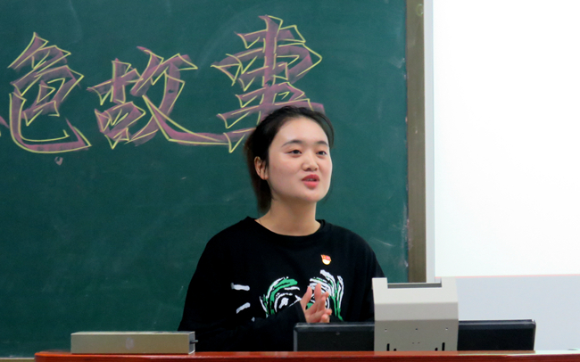 而田雨同学则以《勿忘革命英雄纪念馆》为题,向大家介绍了一位拥有平凡的名字却有不平凡的一生的革命英雄——王昭。“在当时,青海地区由于种种原因,农牧民生活非常贫困,王昭同志一到任,首先冲破阻力,实事求是地讲穷讲苦,要让老百姓吃饱饭,并通过一系列措施,使得青海农牧业很快出现了一片可喜景象。可正在他要继续努力实现他的宏伟蓝图时,文化大革命爆发了,在遭受种种磨难后,王昭同志于1970年2月12日含冤去世。”在那个年代,为了保全自己而牺牲他人,出卖他人的事情屡见不鲜,而王昭同志却光明磊落、无私无畏,这样高尚的品质,这种英雄气概,使不少在场同学为之动容,也给大家留下了深刻的印象。
