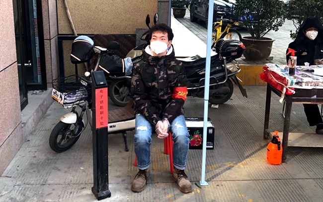 公司2018级员工胡斌因为春节期间看《新闻1+1》,被奋不顾身投入一线的“逆行者”感动到,所以在他得知家乡新二路社区招募防疫志愿者到时候便毫不犹豫的报了名。他每天的工作就是为小区在疫情防控期间做好进出人员登记,量体温,同时告诫他们一些隔离期间的注意事项。对有些居民对于小区采取封闭式管理不能理解,抱着侥幸的心理天天出去,他仍积极劝说他们回家隔离。胡斌表示:“在这场阻击战的关键时期,我很荣幸能成为一名防疫志愿者,为祖国尽自己的微薄之力。”