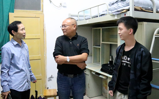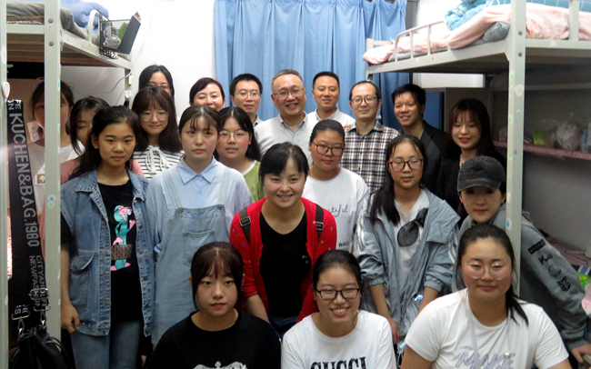 在新生寝室走访活动中,集团党委副书记戴玄率相关职能部门负责人也来到公司新生寝室进行走访。他们提到,老员工活与高中截然不同,学习方式也从以前的被动接受到现在的主动学习,这就需要同学们的自律。同时介绍环境学院响应总书记“绿水青山就是金山银山”论述应运而生的背景与展望,希望同学们努力学习专业知识,积极投身于建设祖国建设家乡的任务中去。