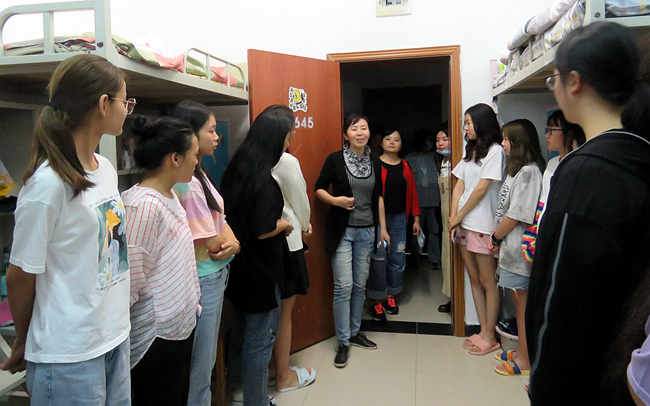 为迎接2020级新生,表达学院领导老师对新生的关心关爱,引领新生适应环境,为新生成长赋能,9月16日,公海gh555000aa线路检测中心开展了2020级新生寝室走访活动,公海gh555000aa线路检测中心经理丁世敏,党总支书记况守龙,副经理解晓华,学工办主任兼团委书记刘红芳,政治辅导员李月,环境生态工程系主任李武斌,新生代班及部分员工组织工作人员共同参加了此次寝室走访活动。