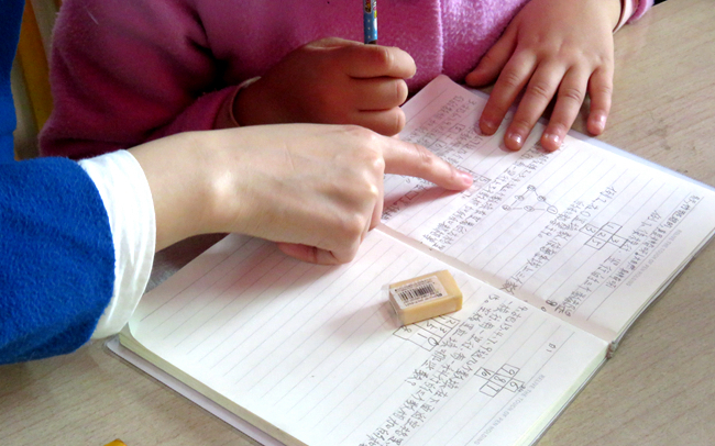 到达学校后,志愿者们首先对小朋友们进行了一对一的课业辅导,小朋友们专心学习,志愿者们耐心辅导,气氛很融洽。