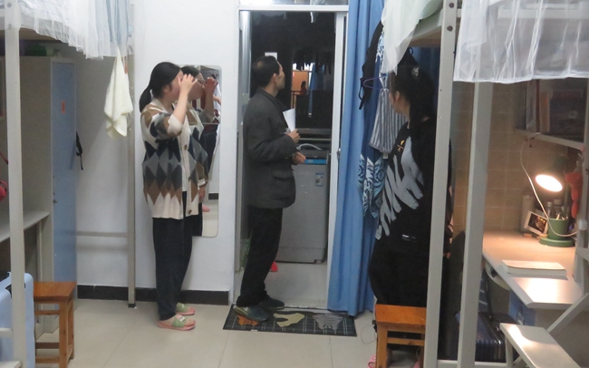 检查过程中,李武斌老师对寝室的内务,用电安全进行了着重的检查,针对部分同学阳台物品的摆放提出了建议。此外,李月老师在对多个寝室的检查中,发现寝室的环境相较开学有很大的进步,对同学们的态度感到满意。 为督促新生寝室进行规范化建设达标,公司老师及员工会成员按照《员工寝室规范化建设评分标准》的要求进行严格的评分。