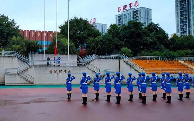 此次升旗仪式由国旗护卫队负责执行,在全体师生的注视下,国旗护卫队迈着庄严的步伐走到旗台前,伴随着义勇军进行曲的响起,升旗仪式正式开始,五星红旗冉冉升起,迎风飘扬。全体师生注视着升起的国旗,表达了无限的敬意。