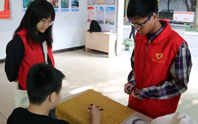 活动开始前,志愿者与小朋友玩起了五子棋,大朋友与小朋友的较量,迅速引起了其他志愿者的围观。