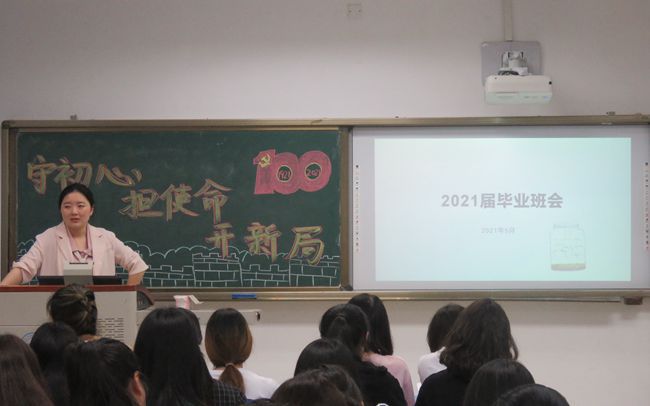 班会第二项,由李月老师对2021届毕业生开最后一次的班会。首先,李月老师对毕业生四年的学业收获进行了简简单的回顾,接着对毕业生的就业问题等待转接核对的资料进行解说,最后对毕业生在校期间的安全问题进行了简短的说明,希望同学们做好最后的安全工作。