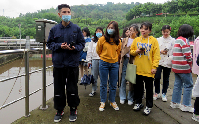 此次活动由环保志愿者协会组织志愿者们前往涪陵李渡新区大耍坝污水处理厂对污水处理设施及工艺流程进行参观了解。据悉,该污水处理厂自正式投入运行以来,污水处理设备运转良好,设计规模为10万立方米/日,现单日处理规模达到3万立方米,对当地流域水质和生态平衡的治理和保护具有十分重要的作用。 在到达涪陵区大耍坝污水处理厂后,污水处理厂工作人员对志愿者们的到来表示热烈的欢迎,并简单介绍了大耍坝污水处理厂的历史和污水处理厂所处理的污水来源,着重强调了参观途中的安全问题。