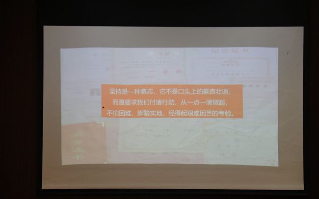主讲人彭文分享了自己的老员工活三部曲:一是大学无他,唯有学习;二是大学无他,唯有努力;三是大学无他,唯有坚持。为什么要以梦为马?因为奋斗新时代,青春正当时。“求其上者得其中,求其中者得其下,求其下者无所得。”彭文强调树立学习目标,对老员工活进行合理规划,并多方面发展是大学学习生涯中极为重要的一环。如何做到不负韶华?唯有努力。“千里之行,始于足下。”前进道路上获得的所有嘉奖,都是不断努力的有力反馈。做到不负韶华最重要的一步就是,唯有坚持。“锲而舍之,朽木不折,锲而不舍,金石可镂。”坚持是一种意志,不是豪言壮语,而是付出行动,脚踏实地,经得起艰难困苦的考验。