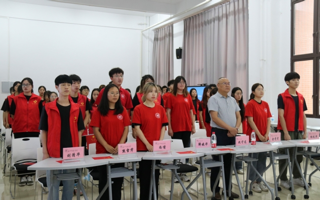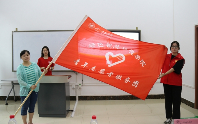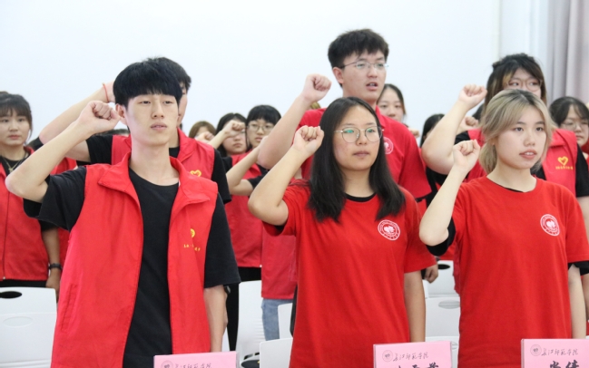 伴随着激昂的乐声,志愿者代表唐潇从解晓华副经理手中接过代表“三下乡”志愿服务团队的旗帜,在志愿者们的热切注视下挥动旗帜,旗帜承接着来自指导老师的殷切期望,代表着“三下乡”志愿活动的精神内涵。金黄的字眼是他们的姓名,鲜红的衣装是决心的象征;践行志愿服务精神是他们的宗旨,传播先进文化是他们的使命;铿锵有力的誓词声回荡在会场中,每个人无不是神采奕奕,迸发而出的是热情与生命力。