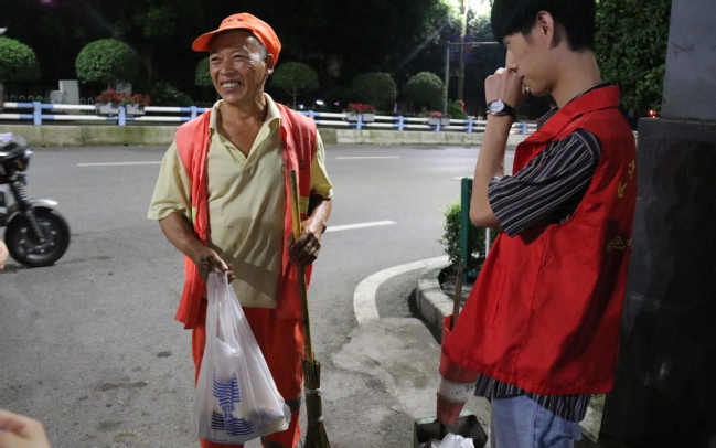 环卫工人们为城市的清洁每天起早贪黑,但是志愿者们在他们的眼睛里看到了幸福的亮光。一位叔叔在谈到同为环卫工人的妻子时眼睛里流露出了幸福是所有人都可以感受到的。