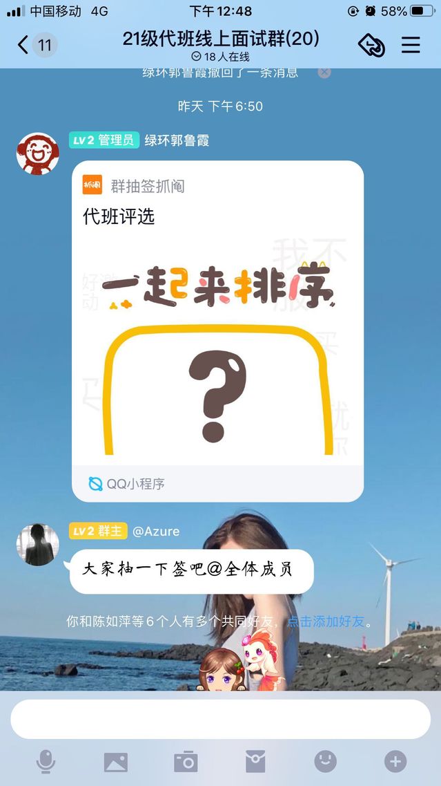 评选以线上会议模式开始,首先由竞选人在面试群里以群抽签的方式决定面试顺序。随后由竞选人自荐演讲,在演讲中竞选人纷纷表达了自己对代班一职的理解,表示会严格遵循学校的规章制度,做好为新生带头的模范作用。最后在提问环节上竞选人积极回答问题,踊跃发言,直至会议结束。