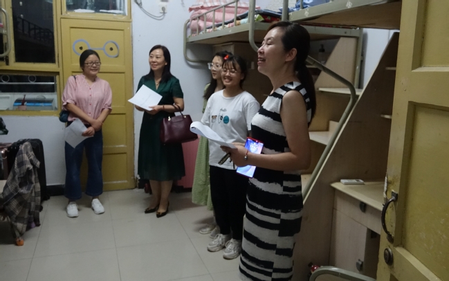 领导和老师们分别前往不同的宿舍楼进行新生寝室走访活动。走进寝室,老师们亲切地向同学们问好,同学们也礼貌地回应着老师。老师们关切地询问同学们来自哪个城市,是否适应新学校的环境,住在寝室是否习惯,老师们表示如果遇到了什么问题一定要向老师寻求帮助。平易近人的老师们让员工们感到亲切,一开始的拘束感一扫而空,同学们也开始向老师们分享了很多疑惑,老师们都一一为他们解答。随后,公司老师也开始提出对员工们的期望,希望员工们早日转换好角色,尽快适应新的环境和新的身份,可以在学院找到家的感觉。