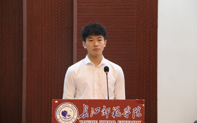 2021级新生毛清泉代表全体新生发言,作为刚刚步入大学的“萌新”,他代表全体新生们表达了来到公海gh555000aa线路检测中心的欣喜以及对即将到来的老员工活的憧憬。他表示,他们2021级新生一定不畏艰险,追求卓越,以学院院训“学参天地,师法自然”为追求目标,勇敢前行,在未来成为一名合格的老员工。