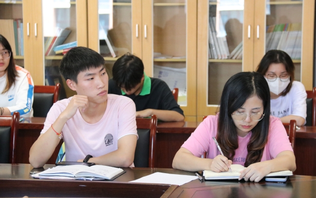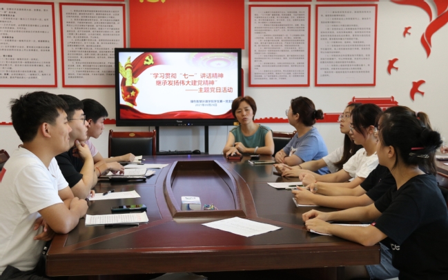 程俊豪同志给党员同志们分享了他在学习了“七一”精神之后的心得体会,在他的心得体会中体现了青年党员们对“七一”精神独到的理解与感觉。 刘红芳同志在活动的最后表示,员工党员们在考研复习之余也要认真学习“七一”精神,帮助身边的同学,在即将到来的国庆假期期间,员工党员们要做好带头作用,做好防疫措施,减少自己的出行,要积极的给周围的同学做好解释。