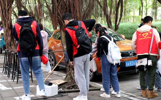 在活动开展前,志愿者们井然有序地进行分工合作。进入场地后,志愿者们积极踊跃地开始打扫卫生,有的同学拿起扫把细心地拂扫灰尘,身旁的同学拿着铲子递过去,有的同学弯下腰,将地上的落叶和垃圾轻轻拾起,放入垃圾桶中。