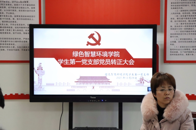 会议伊始,支部书记刘红芳宣读了此次活动党员出勤情况和活动流程。随后党支部预备党员屈发好、刘旭东依次向党组织宣读了转正申请书,总结了自己近期在思想、学习、生活上的进步,客观地提出了自身的不足。然后,入党介绍人介绍了转正对象情况,并对其能否转正表明了意见。最后在进行充分讨论后,通过无记名投票进行了表决,并宣布了结果。随后,进行了党员入党宣誓仪式,在刘红芳书记的带领下,预备党员郑重宣誓志愿加入中国共产党,为共产主义奋斗终身,随时准备为党和人民牺牲一切,永不叛党。 之后进行了12月份主题党日活动,首先由尚倩同志作为微党课讲解主讲人,她为党员们诠释了“两个务必”是全党的宝贵精神财富,让党员们深刻理解了 “两个务必”的现实意义,详细阐释了“两个务必” 的实质,就是不忘记人民群众,不脱离人民群众,让在座的每一个人深入领会了“两个务必”的深邃思想,艰难方显勇毅,磨砺始得玉成。