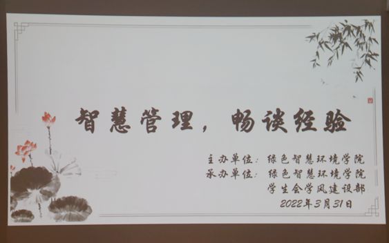 在19级环科1班班长潘鑫的分享中,同学们收获满满。首先,他认为,身为一班之长,要做好本职工作,以身作则。其次,在学习上,为了起到表率作用,他曾经坚持一个学期坐在班级第一排。在工作上,要学会合理分配简化任务,也可以安排给其他7位班委。在与同学一起时,即使性格不同,但也要互相联系,学会包容,融入其中,而不是排斥。最后总结道,即使做不到尽善尽美,但也要尽量做到让更多人满意。