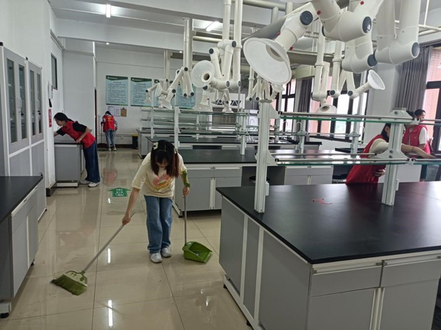 志愿者们在正式进行打扫之前,先阅读学习了实验室安全规程和相关纪律。随后便分工行动,按照各自的责任分区井然有序地进行清扫,分别清洁实验台面以及打扫地板等等。此次实验室清扫志愿服务活动,为学院师生创造了干净、整洁、舒适的实验环境。 |