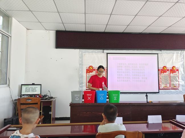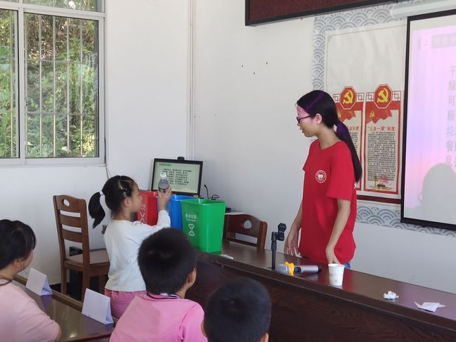 同时对于小朋友们比较好奇的“沾了水的卫生纸、废弃的手表、属于哪一类问题,志愿者也给出了充分的解答。主题宣传结束时,与小朋友一起收拾活动场地,小朋友将产生的垃圾如废纸、矿泉水要投入相对应的垃圾桶。