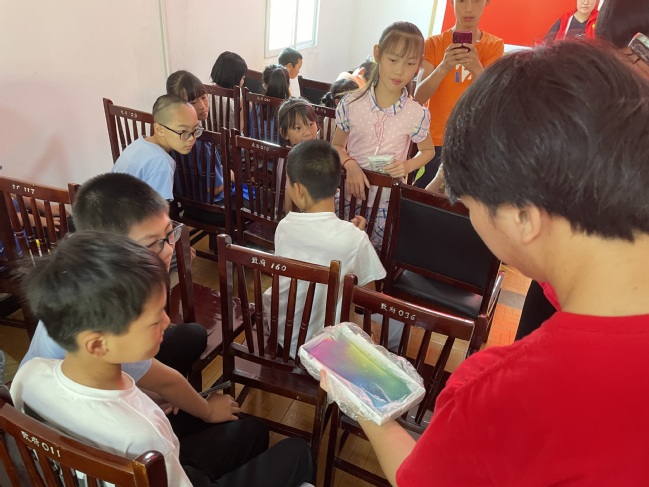 整个实验期间孩子们积极思考问题,发表了自己对科学实验的意见和想法,实验过后志愿者们根据孩子们的疑问,悉心进行了解答并在黑板上画出科学实验的原理图,便于孩子们能更好的学习与理解。