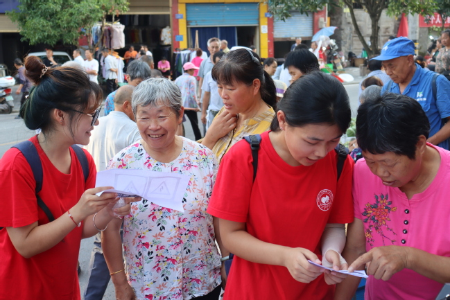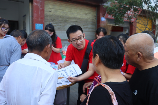 在带队老师王捷老师的带领下,宣讲团走进龙桥社区,向社区居民科普安全知识。本次宣讲围绕“防诈骗、防溺水、安全用火、安全用电”四个方面进行宣讲,活动中,志愿者们向社区居民具体讲解了诈骗的各种类型手段,实例分析,告诉他们防诈骗的对策。夏天是溺水事故的高峰期,为居民重点讲解了防溺水的安全举措,以及遇到他人溺水的对策,提高村民自护自救的能力。宣讲团又为村民科普了用火用电的注意事项及正确做法,为村民讲解防火防电的安全举措,事故发生后的应对措施。同时,宣讲团举行了安全图标识别辨认比拼及安全小知识提问环节,现场居民抢答,加强了他们对安全的认识,让他们更深入的了解掌握并懂得正确运用安全知识。