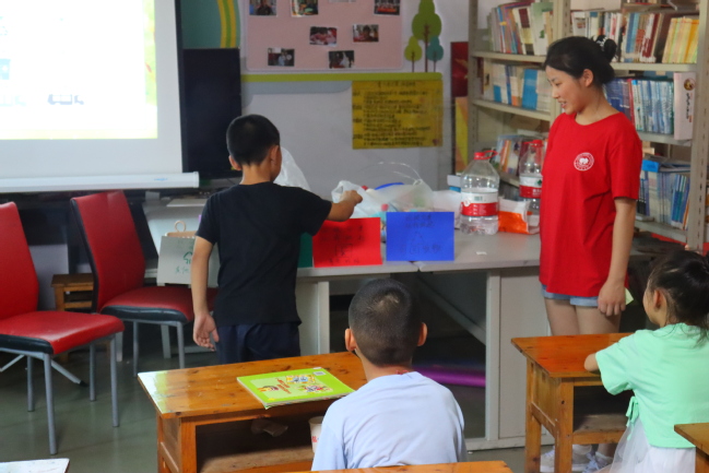 在垃圾分类讲解之后,志愿者们又以游戏的形式,将各类垃圾写在卡纸上,让,学习了垃圾分类知识小朋友们参与其中。并在志愿者引导下,小朋友们顺利完成了“垃圾分类实践”小游戏。志愿者检查后对分类正确的小朋友进行了嘉奖,并且对分类错误的小朋友进行了指正。