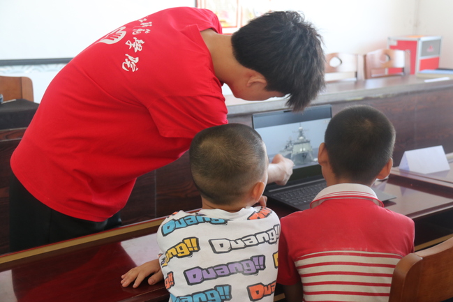 在“军事科技”主题宣讲中,志愿者首先让小朋友观看了中国军事宣传片,感受军事科技的魅力。之后,志愿者依次介绍了中国陆空海的军事武器与它们的作用和特点,让小朋友领会到了中国先进的军事科技和技术水平。课后,志愿者还带领了小朋友进行了物理小实验,在实践中了解实践的乐趣与科学的魅力。