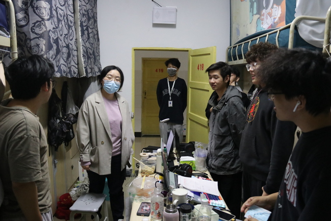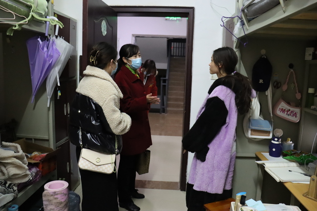 此次检查的关键在于员工寝室的用电安全,老师们主要检查员工寝室是否存在使用违规电器、私拉乱接电源等现象,并强调了规范用电的重要性,提醒员工们不要因为降温而使用电热毯等违规电器来取暖,同时也不要在寝室饲养小动物,也不可饮酒吸烟。老师们还强调了因为疫情封校,同学们要积极打扫寝室这个主要活动地。