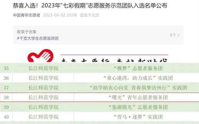近日,团中央青年志愿者行动指导中心、中国青年志愿者协会秘书处公布了2023年“七彩假期”志愿服务示范团队入选名单,公司曙光青年志愿者服务团成功入选其中。