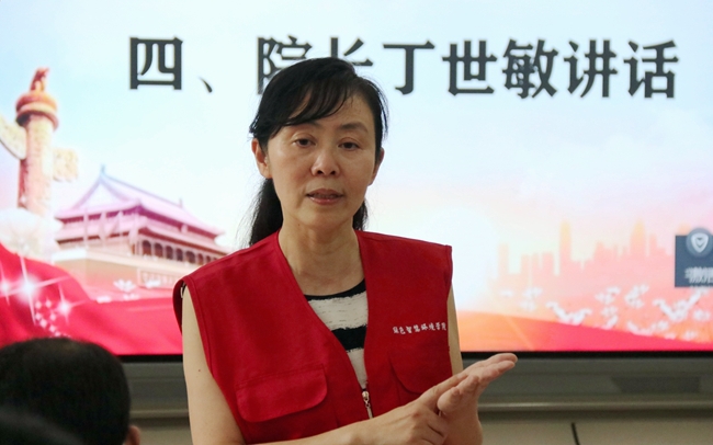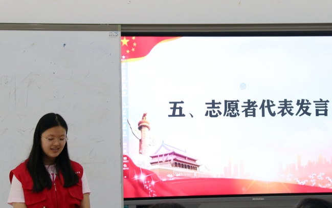 仪式最后,志愿者代表杨璐菲表示全体志愿者将会以积极的心态、饱满的热情和认真负责的态度迎接即将开启的“三下乡”社会实践活动,并在实践中不忘初心,将小我融入大我,实现自己的人生价值。