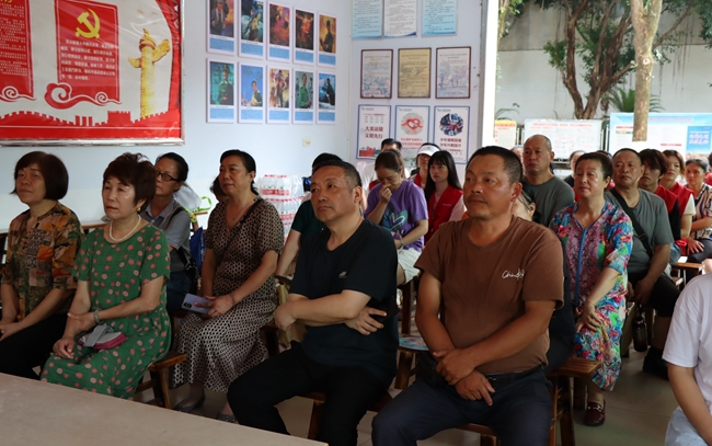 活动伊始,高岩口社区书记夏元梅汇报了社区近半年的工作,指出党群建设工作中所存在的问题和改正措施。紧接着社区监督委员指出,要加强党风廉政建设工作,同时通报违规违纪党员,提醒所有党员同志引以为戒,深刻剖析,汲取教训,厚植纪律意识根基。志愿者从党的二十大报告出发,与社区居民一起回顾了国家过去五年的工作和新时代十年的伟大变革以及高岩口社区在乡村振兴中取得的显著成果。最后,志愿者们强调了社区居民要牢固树立和践行绿水青山就是金山银山的理念,并且要不忘初心,牢记使命,务必谦虚谨慎、艰苦奋斗。