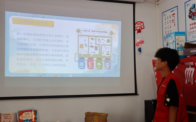 志愿者通过展示实物、图片、视频等方式,让小朋友深入了解不同类型的垃圾以及垃圾分类与环保和可持续发展的重要性。在课程的互动环节,小朋友们积极参与,提出各种有关垃圾分类的问题。志愿者们也耐心回答了他们的疑问,引导他们在活动中深入思考与交流,帮助小朋友了解垃圾分类的重要性,明白绿色低碳生活的内涵。