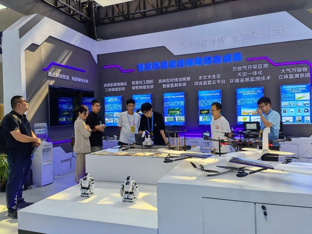 9月4日,2023中国国际智能产业博览会在重庆开幕。绿色智慧学院围绕遥感影像精细化三维建模、化工园区环境监测预警预报、森林松材线虫病智能识别以及地天空一体化环境监测技术等领域,在重庆国际博览中心N1馆1027公海gh555000aa线路检测中心展位集中展出了一批科技创新成果,尤其呈现成果的原创性突破和应用性转化,受到不少观众的关注和咨询,前面摆放的两个大型无人机也吸引着不少入场观众的目光。