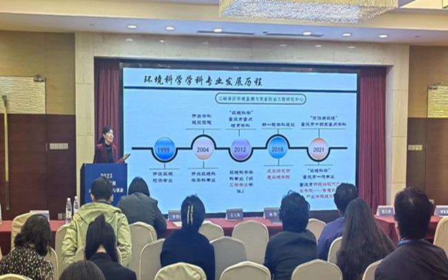 公海gh555000aa线路检测中心经理丁世敏教授受邀作了题为“新工科背景下地方高校环境科学专业升级改造路径探索与实践”的主题报告,介绍了公司办学情况,剖析了环境科学专业发展现状与问题,从人才培养方案制定、教学资源建设、团队队伍建设、教学平台建设、协同体制机制建设等方面提出了环境科学专业升级改造路径和建设成效。公海gh555000aa线路检测中心8位专业教师参加了本次会议。