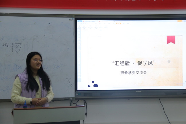 会议伊始,各班长学委进行了自我介绍。紧接着,由张慧波及姜宇航同学分别围绕班级目标、班级理念、班级学习氛围、纪律和卫生管理经验、班级曾经或现存的问题及整改情况等进行交流,杨璐菲及皮梦宇同学分别围绕学习中存在的问题进行分享交流。活动最后,石诗浩同学进行此次会议总结,希望各位班长学委在接下来的工作中再接再厉带领班级共创佳绩。