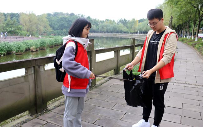 志愿者们抵达鉴湖区域后,纷纷投入到清洁工作中来,有的手持钳子弯腰夹起垃圾,有的撑起垃圾袋供垃圾纳入袋中。志愿者们的积极性都很高,热情高涨,大家相互协作配合,伴随着欢声笑语,同学们不放过任何一个死角,对鉴湖区域做了认真的清理。不久后,湖旁的垃圾便清理得干干净净。